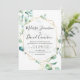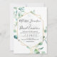 Greenery Wedding Invitation featuring hand-painted mint green watercolor eucalyptus leaves accented by a modern white gold geometric frame, has been paired with a whimsical script and a clean sans serif font. Option to add your own photo to the back. Customize it as required & make it your own!