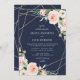 geometric floral blush & navy blue wedding invitation