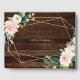 This wedding guestbook features painted watercolor flowers in blush pink, white, and green foliage with a geometric gold frame on a rustic wood print background. For more advanced customisation of this design, please click the Customise Further link to change font, size, and colour. Matching items are also available.