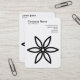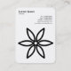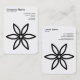 A business card template with geometric flower motif. Company name, business type and address on the front with name, job title, telephony, web and email addresses on the back, with the same layout.