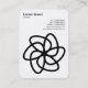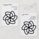 A business card template with geometric flower motif. Company name, business type and address on the front with name, job title, telephony, web and email addresses on the back, with the same layout.