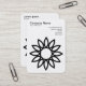 A business card template with geometric flower motif. Company name, business type and address on the front with name, job title, telephony, web and email addresses on the back, with the same layout.