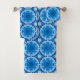 Geometric Flower Pattern in Cerulean & Light Blue Bath Towel Set