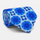 Tie in a geometric flower pattern in deep cobalt blue and navy / indigo, on white accented with turquoise
