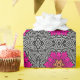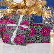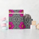 Wrapping paper in a geometric flower pattern adapted from an Art Nouveau floral - Deep fuchsia pink flowers against a geometric leafy background in silver grey accented with black