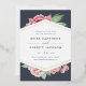 Elegant save the date cards feature a chic mix of vintage watercolor florals and modern geometric elements. A spray of blush pink watercolor peony flowers peeks out from the top and bottom of a central diamond shaped element outlined in gold foil, holding your names and wedding details in clean, modern lettering.