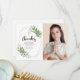 Geometric Foliage Cross Photo Communion Thank You Card