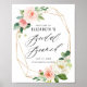 Geometric Gold Frame Pink Peach Watercolor Florals Bridal Brunch Welcome Sign. Customisable bridal shower welcome poster featuring watercolor romantic pink and white flower bouquets with greenery and faux gold foil geometric frames. This floral bridal shower sign is perfect for spring and garden bridal showers. Other events and matching items are available.