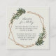 Boho gender neutral enclosure card with "Books for Baby" in an elegant script and a cute message asking your guests to bring a book instead of a card, inside of a gold geometric frame surrounded by greenery and white flowers. A botanical design that is perfect for a bohemian celebration in the summer. This gender neutral design is great whether you are having a boy or a girl.