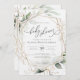 Geometric Faux Gold and Greenery Baby Shower Invitation. Whimsical watercolors and modern typography complement the design. Personalise this Baby Shower Invitation with your baby shower details easily and quickly, press the customise it button to further re-arrange, and format the style and placement of the text.