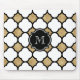 Geometric Gold Black White Quatrefoil Monogram Mouse Pad