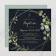 This geometric gold blue green calligraphy baptism invitation is perfect for a simple baby baptism or christening. The design features hand-painted beautiful green leaves in a dark blue background, adorning a gold geometric frame.