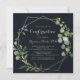 This geometric gold blue green confirmation invitation is perfect for a simple religious event. The design features hand-painted beautiful green leaves in a dark blue background, adorning a gold geometric frame.