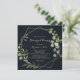 This geometric gold blue green rehearsal dinner invitation is perfect for a simple day before the wedding family and friends get together dinner. The design features hand-painted beautiful green leaves in a dark blue background, adorning a gold geometric frame.