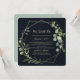 This geometric gold blue green we still do vow renewal invitation is perfect for a simple vow renewal ceremony and celebration. The design features hand-painted beautiful green leaves in a dark blue background, adorning a gold geometric frame.