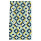 This mid-century modern pattern features gold and blue shapes.