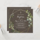 This geometric gold brown green calligraphy baptism invitation is perfect for a simple baby baptism or christening. The design features hand-painted beautiful green leaves in a brown background, adorning a gold geometric frame.