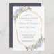 Geometric Gold Dusty Blue Florals Rehearsal Dinner Invitation
