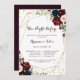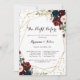This geometric gold fall night before rehearsal dinner invitation is perfect for a simple family and friends night before the wedding get together dinner. The design features artistic hand-painted watercolor navy blue, burgundy, red, blush roses and peonies with elegant green leaves, inspiring the colourful idyllic autumn beauty.