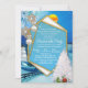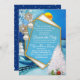 A Blue winter Christmas holiday scene with a Geometric gold frame is easy to customise with your wording, font, font colour, paper shape and choice of twelve paper types.