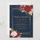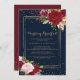This geometric gold glitter red wedding breakfast invitation is perfect for a modern family and friends the day after wedding get together breakfast. The artistic bordo marsala design features watercolor, green, pink, burgundy and blush roses assorted with greenery neatly arranged around geometric gold frames in a graceful and radiant flower bouquet.