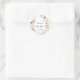 This geometric gold green foliage baby shower favour sticker is perfect for a modern baby shower. The design features hand-painted botanical green and gold foliage with pink, blush, white flowers, adorning an elegant geometric frame.