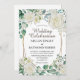 Geometric Gold Greenery Green & White Roses Rustic Invitation