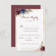 These geometric gold modern wedding menu choice cards are perfect for a rustic wedding. The design features hand-drawn watercolor purple, navy, blush, burgundy, navy flowers, green and gold leaves adorning an elegant geometric frame.