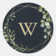 These geometric gold monogram wedding envelope seals are perfect for a modern wedding. The design features hand-painted beautiful green leaves in a dark blue background, adorning a gold geometric frame.