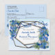 Geometric Gold-Navy & Blue Flowers Save the Dates Announcement Postcard