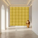 This geometric gold pattern ceramic tile features a symmetrical design with various shades of gold, creating depth and visual interest.