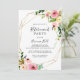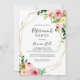 This geometric gold tropical autumn retirement party invitation is perfect for a modern retirement celebration. The design features pink, blush, yellow, blue and white watercolor fall peonies with botanical green leaves, adorning a geometric frame.