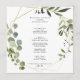 This geometric gold tropical green calligraphy dinner menu card is perfect for a simple wedding. The design features hand-painted beautiful green leaves, adorning a gold geometric frame.