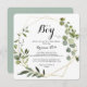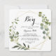 This geometric gold tropical it's a boy baby shower invitation is perfect for a simple baby shower or sprinkle. The design features hand-painted beautiful green leaves, adorning a gold geometric frame.