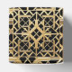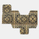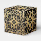 A symmetrical, intricate Art Deco-inspired gold pattern on black, portraying luxury and elegance. Detailed geometric designs with gold accents, ideal for branding, decoration, backgrounds, or artistic themes.