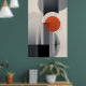 Artwork combining precise geometric shapes with soft colour gradients and fluid lines, creating a balance between modernity and visual harmony.