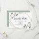This geometric greenery calligraphy horizontal wedding save the date is perfect for a rustic wedding. The design features hand-drawn botanical green eucalyptus branches and leaves adorning an elegant gold frame.