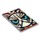 A stylized grumpy cat face in a bold geometric design with teal, cream, and orange tones—perfect for cat lovers with attitude and a love for quirky art.