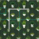 This illustrated pattern showcases fresh, green houseplants hanging in chic geometric shaped pots and terrariums. The hanging planters are filled with popular houseplants such as string of pearls, aloe vera and pothos in vibrant shades of green. The planters themselves are simplistic, decorated in geometric shapes in golden shades on a cream background. This pattern has cosy oasis vibes and is great for anyone with a green thumb.