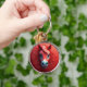 Geometric Horse Portrait in Vibrant Red and White Key Ring