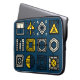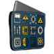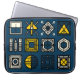 A laptop sleeve with a grid of geometric icons, offering a modern, tech-inspired design for professionals or students.