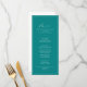 This geometric idyllic stylish calligraphy teal dinner menu card is perfect for a simple wedding. The simple and elegant design features classic and fancy script typography in a teal background.