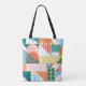 A geometric jumble pattern of different colourful shapes. This design looks really effective on these Tote Bag