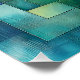 This striking geometric art print features a radiant sunset landscape framed by a multi-layered arrangement of teal, blue, and green rectangles. The combination of warm and cool tones creates a unique depth and dynamic aesthetic, perfect for modern spaces. Ideal for lovers of abstract and geometric designs, this piece brings a balanced mix of colour, structure, and nature to any home or office.