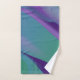 Geometric pattern lavender, turquoise, and violet bath towel set. This bath towel set features a geometric pattern in shades of lavender, turquoise, and violet. The design incorporates a repeating geometric motif, creating a visually appealing and modern aesthetic. The set is referred to as a bath towel set, implying that it contains multiple towels suitable for bathroom use. The primary colours highlighted are lavender, turquoise, and violet, suggesting a calming and cool colour palette.