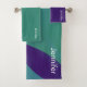 Geometric pattern lavender turguoise violet with name Bath Towel Set.