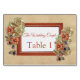Soft light warm butter-colour suede with a geometric brown leather frame or a leather photo frame decorated with leather flowers of creams,reds and green leaves. This collection gives you a visual of the possibilities and helps you put together your very own stationary theme for number and name cards for each quest on the table