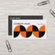 A business card template with an attractive geometric composition in an attractive palette of colours. Company details on the front with name and contact details on the back in white on a contrasting dark grey background. Can be adapted to a variety of businesses and other uses. Can also be changed for use more as a profile card by removing or swapping the company and personal name details.