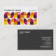 A business card template with an attractive geometric composition in an attractive palette of colours. Company details on the front with name and contact details on the back in white on a contrasting dark grey background. Can be adapted to a variety of businesses and other uses. Can also be changed for use more as a profile card by removing or swapping the company and personal name details.