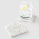 The coasters are gorgeous, a quality feel and heavy weight. They look like a precious archeological find. A rustic stone juxtaposed with a modern floral black and white print. I like the way the print goes slightly imperfect on the cut stone edges giving them a kind-of natural beauty.